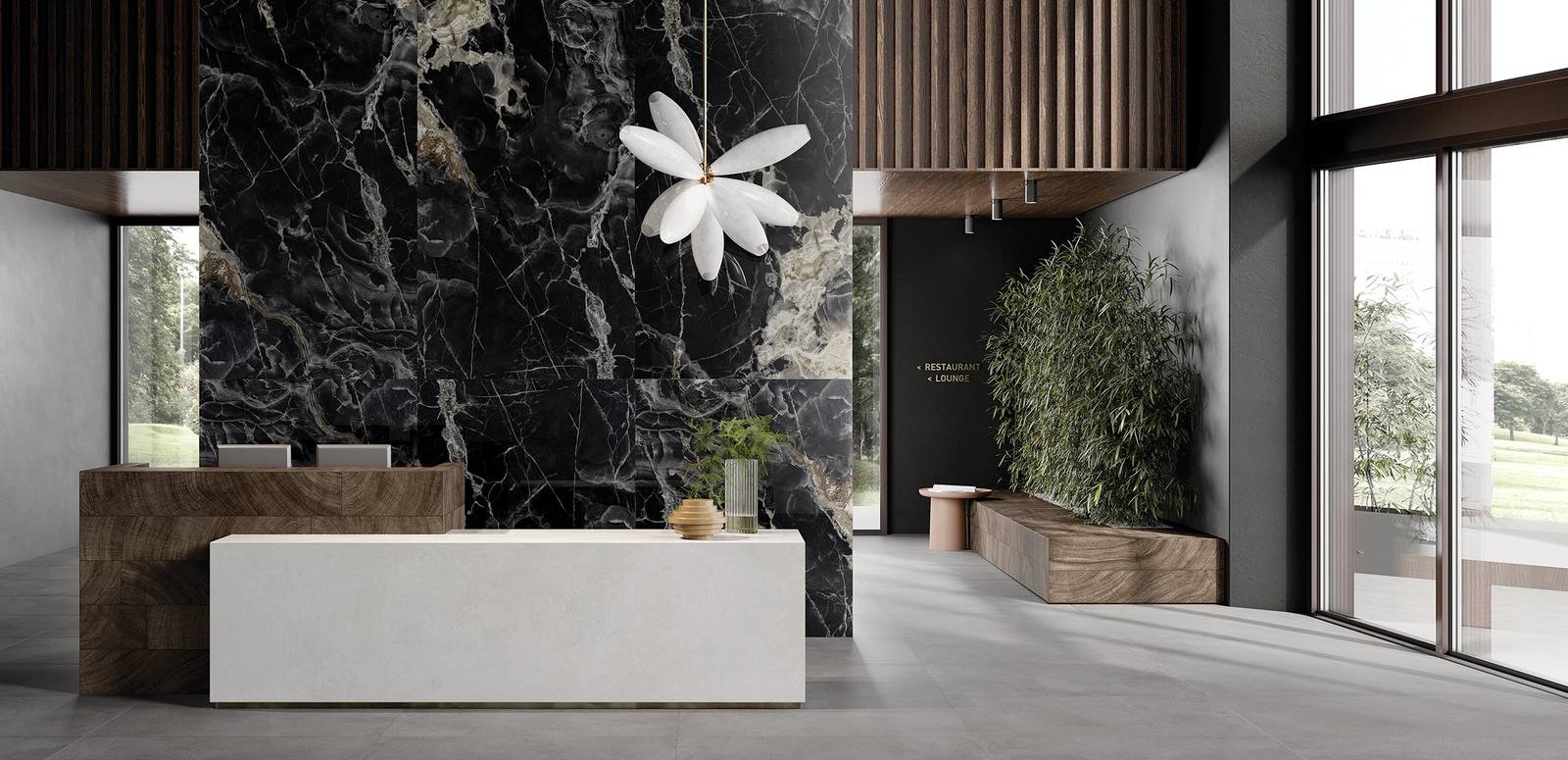 Design your luxury interiors with a timeless charm. A wide and varied range of collections inspired by the elegance of marble to offer hundreds of solutions for residential areas, hospitality industry and business places. Revised classy marble and granite patterns displaying elegant veins which remodel your spaces, creating sophisticated ambiances. When you chose a marble looking tile collection, you chose the timeless beauty of one of the finest material in nature, combining it with all the advantages of porcelain and ceramic tiles in terms of performance, durability and ease of laying and maintenance.
