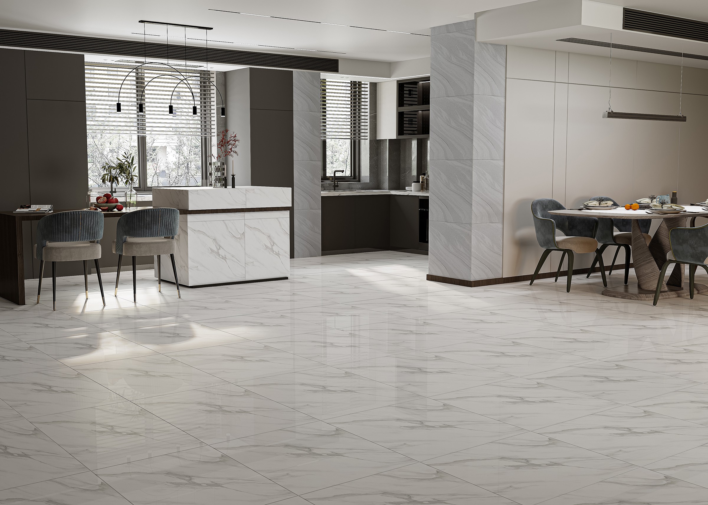 RAK Polished Glazed Vitrified Tiles are designed to retain their luster and color vibrancy over time.Surface reflects light beautifully, adding a touch of luxury and sophistication to any space.Versatile Application and wide range of Designs.Easy to Clean and Resistant to Dirt, Stains and Spills. Bedrooms: Suitable for bedrooms, where moderate foot traffic is expected. They create a cohesive and luxurious appearance.Living Rooms & Dining Areas: These tiles provide a balanced aesthetic, making them ideal for medium to large living spaces and dining areas. Their size offers a seamless look with fewer grout lines, enhancing the room's overall elegance.Kitchens: Ideal for kitchen floors due to their manageable size and ease of cleaning. Their durability ensures they can withstand typical kitchen activities.
