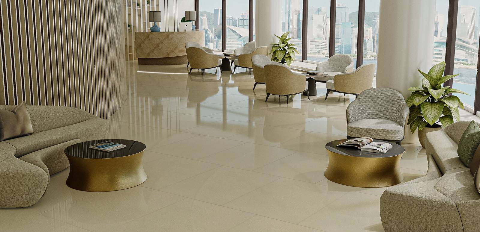 Feature : Technical Porcelain crafted using a special manufacturing process where two layers of pigment are applied.Durable and resistant to wear and tear compared to traditional tiles.Ideal for high-traffic areas such as commercial spaces, hallways, and kitchens.Easy to clean and require minimal maintenanceApplication: Office Spaces: Ideal for office floors, providing a professional and polished look. These tiles can withstand heavy foot traffic while maintaining their shine and appearance.Retail Stores: Suitable for retail environments, ensuring durability and elegance. The size offers a balanced look with fewer grout lines, which is important for maintaining cleanliness.Residential Living Areas: Perfect for high-traffic residential areas such as living rooms and hallways. Their durability makes them a practical choice for families with children and pets.