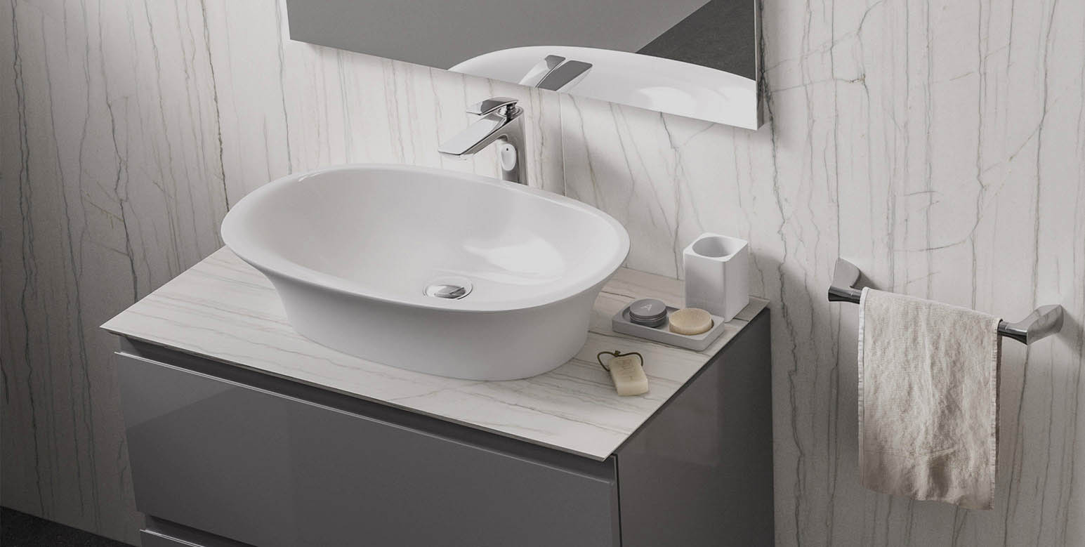 Achieve that perfect harmony by combining RAK-Morning washbasin with any 6 finishes of RAK-Precious countertop solutions that perfectly integrates with our RAK-Joy vanity units.