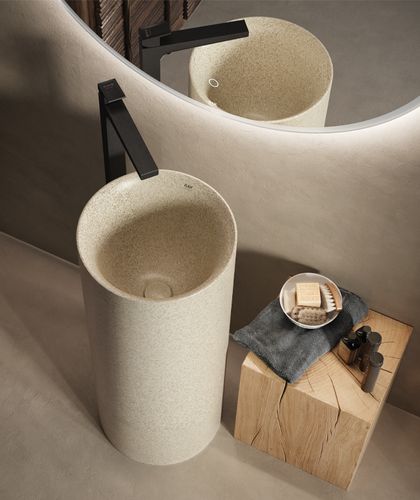 RAK-Batu È La Nuova Collezione Di Lavabi Presentata In Un Nuovo Smalto Artistico, Ottenuto Aggiungendo Particelle Di Mica Nella Miscela (Muscovite).