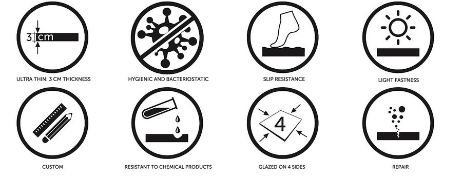 RAK-Feeling is only 3cm thin and its surface prohibits the growth of bacteria and fungi to ensure greater safety and hygiene. All the shower trays feature excellent resistance to chemical products. This is confirmed by the strictest chemical resistance tests required by the EN 14527 Standard. They are not affected by exposure to light. This is confirmed by xenon arc lamp tests, which simulate sunlight on shower trays and verify the effects of ageing (EN ISO 4892 Standard). Our RAKSOLID material meets the highest safety standards, being classified in DIN 51097 Class C (the highest achievable level of slip resistance). It prevents slipping on surfaces with an inclination angle of more than 24°. In the event of chips and scratches, shower trays can be restored to their original condition using a special repair kit.