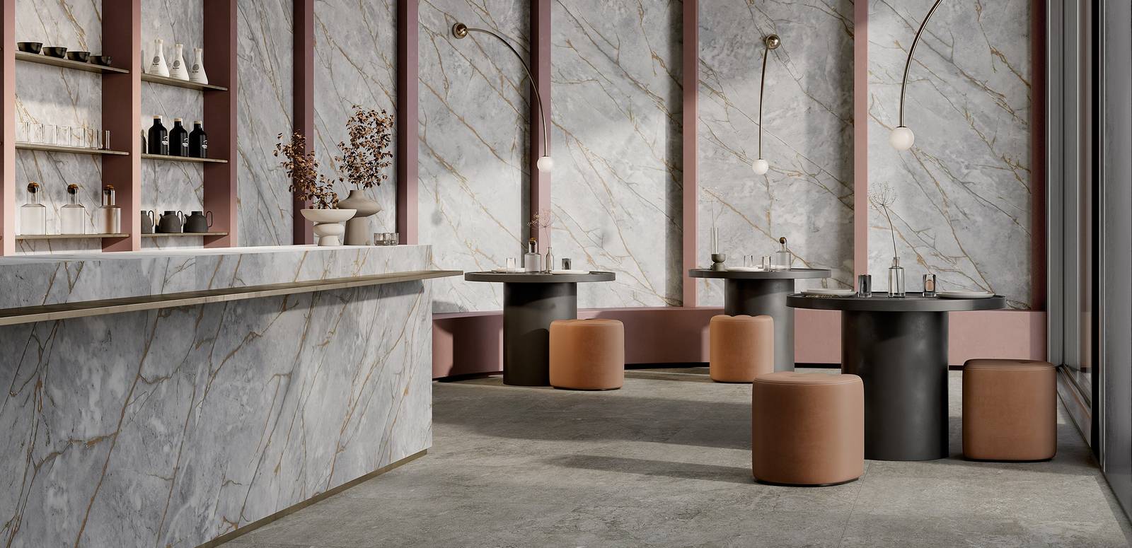 Une vaste gamme variée de collections s´inspirant à l´élégance du marbre, offre des centaines de solutions pour les espaces résidentiels, les hôtels, les restaurants et les lieux de travail. Les veines des effets classiques du marbre et du granit sont reproduites et réinterprétées pour modéler des murs, des sols, des plans de travail et des éléments d´ameublement, créant des espaces sophistiqués. Les collections marbre Maximus présentent l´expression la plus sophistiquée de luxe. Disponibles aussi avec l´effet contemporain Open Book, dans une vaste gamme de formats, d´épaisseurs et de designs.