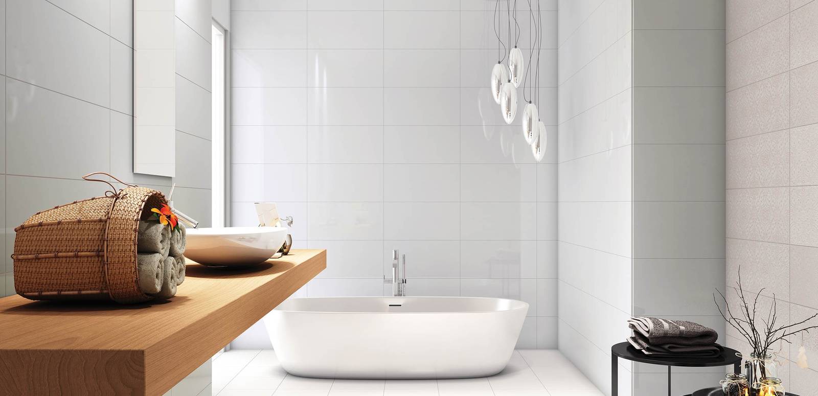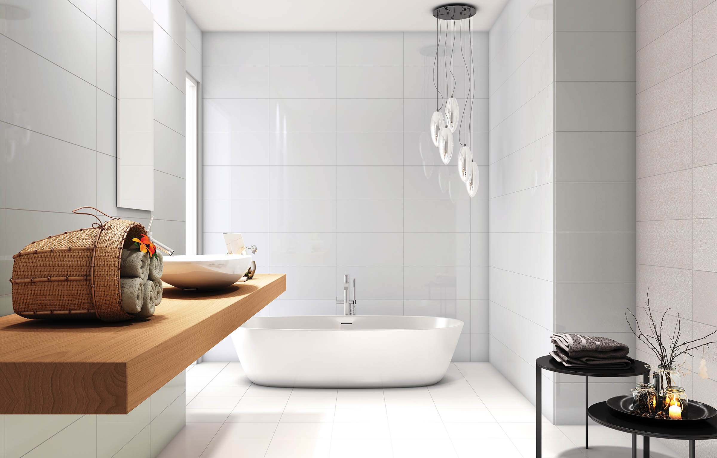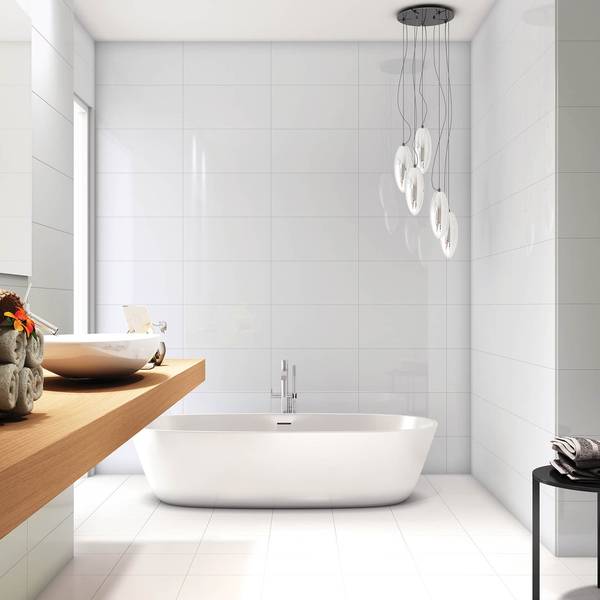 Sensation ist eine glatte, weiße Keramikfliese für den klassischen Effekt im Badezimmer. Verfügbar in 25 x 70 cm.