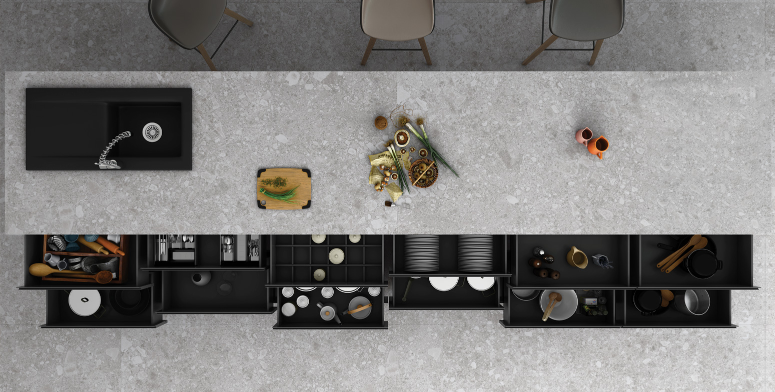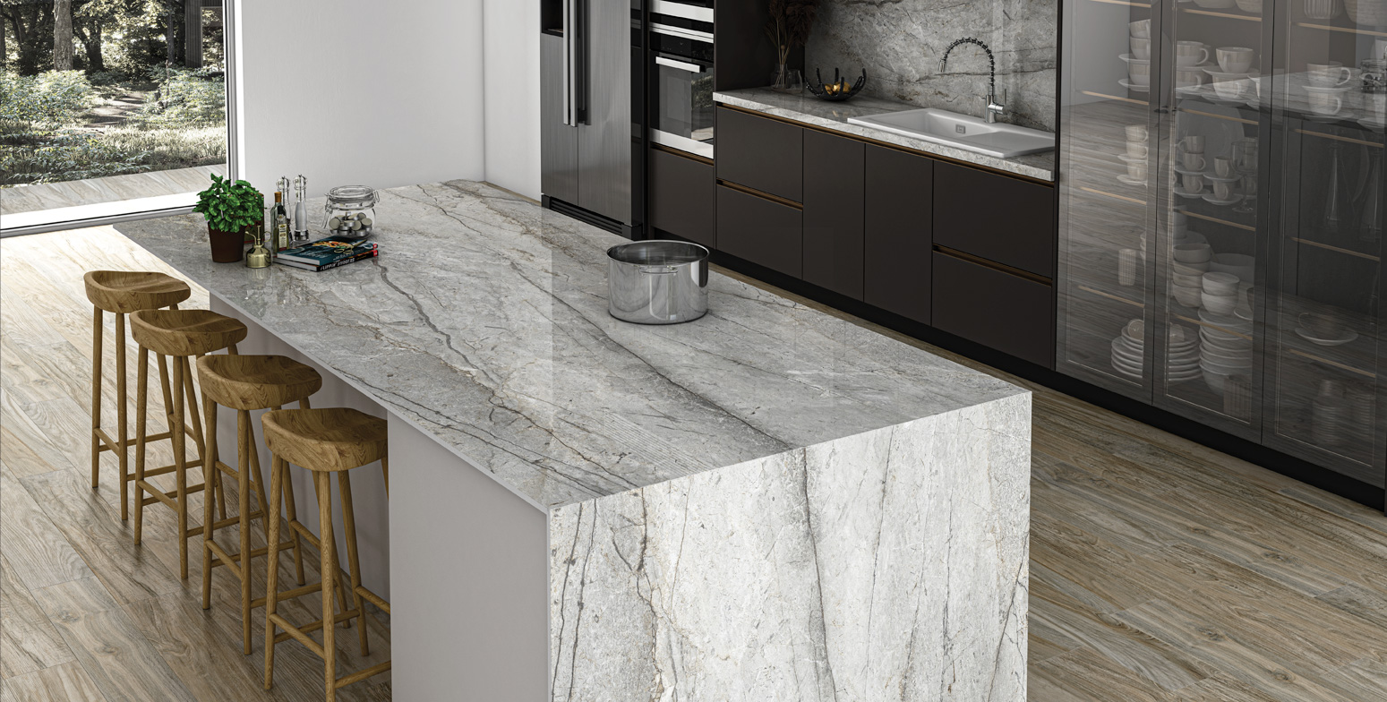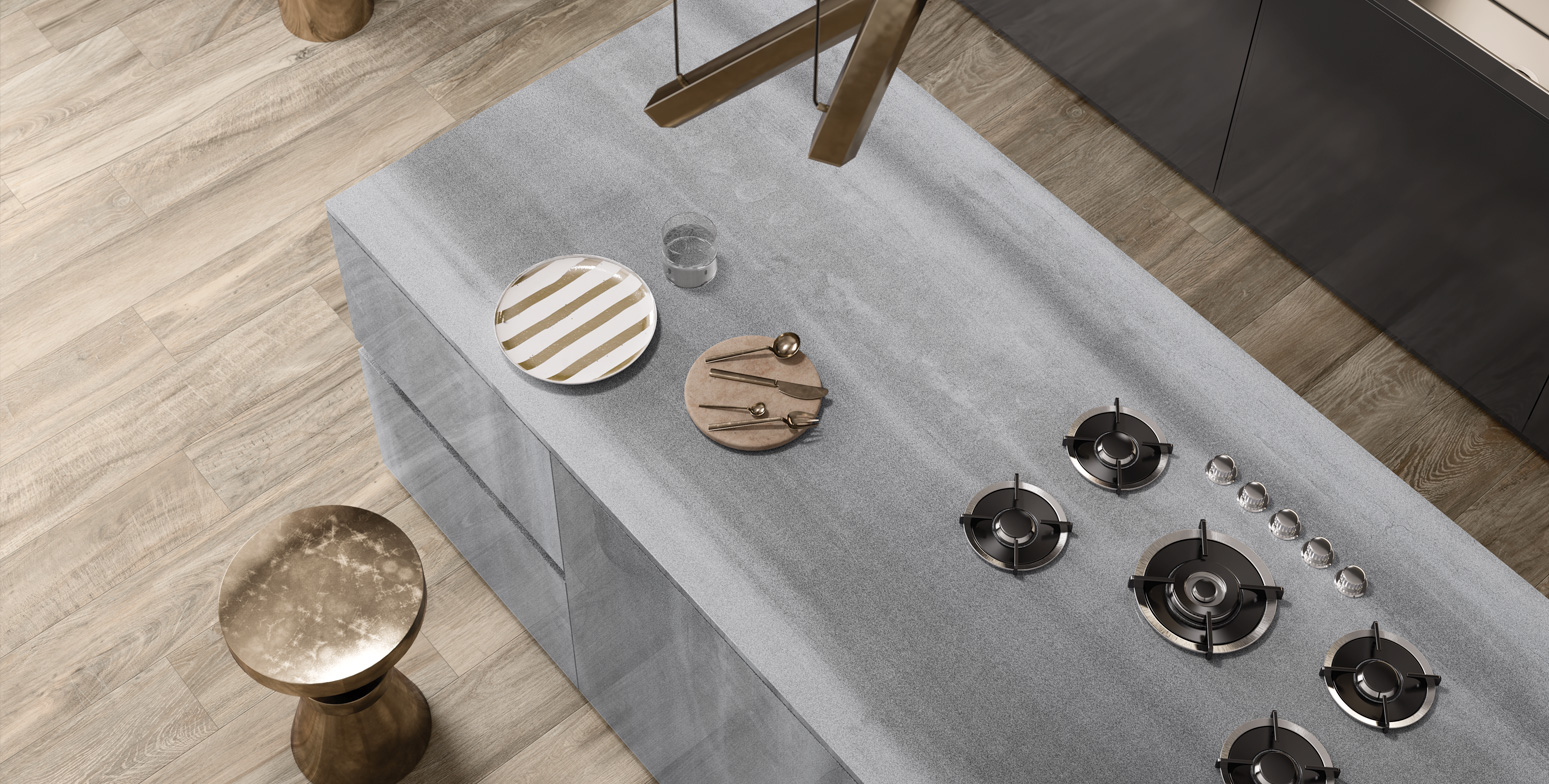 Maximus - The Countertop collection from RAK Ceramics is the next generation of large format tiles that are versatile and highly technical. They are perfect for kitchen countertops, vanity tops and furntitre application for residential and commercial settings.