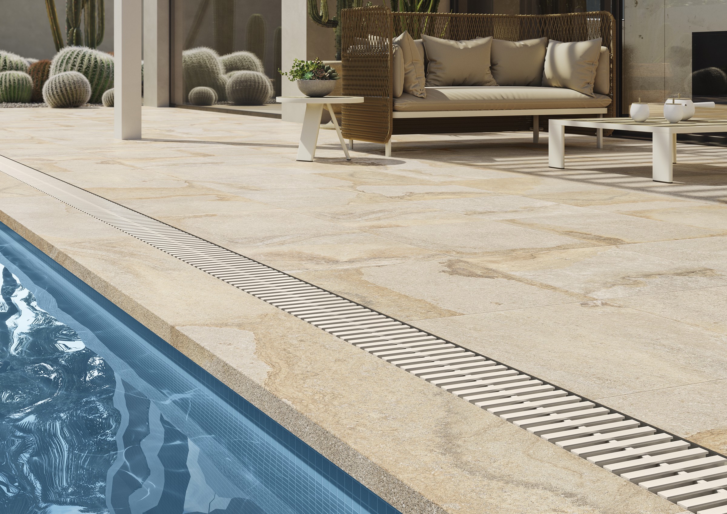 The Antislip Barefoot + technology gives vitrified tiles excellent nonslip performance and pleasant feel, with a special roughness imperceptible to the touch. All products equipped with the Antislip Barefoot + technology becomeanti-slip in wet onditions, that makes these tiles a must have for indoor areas subject to moisture and outdoor applications.