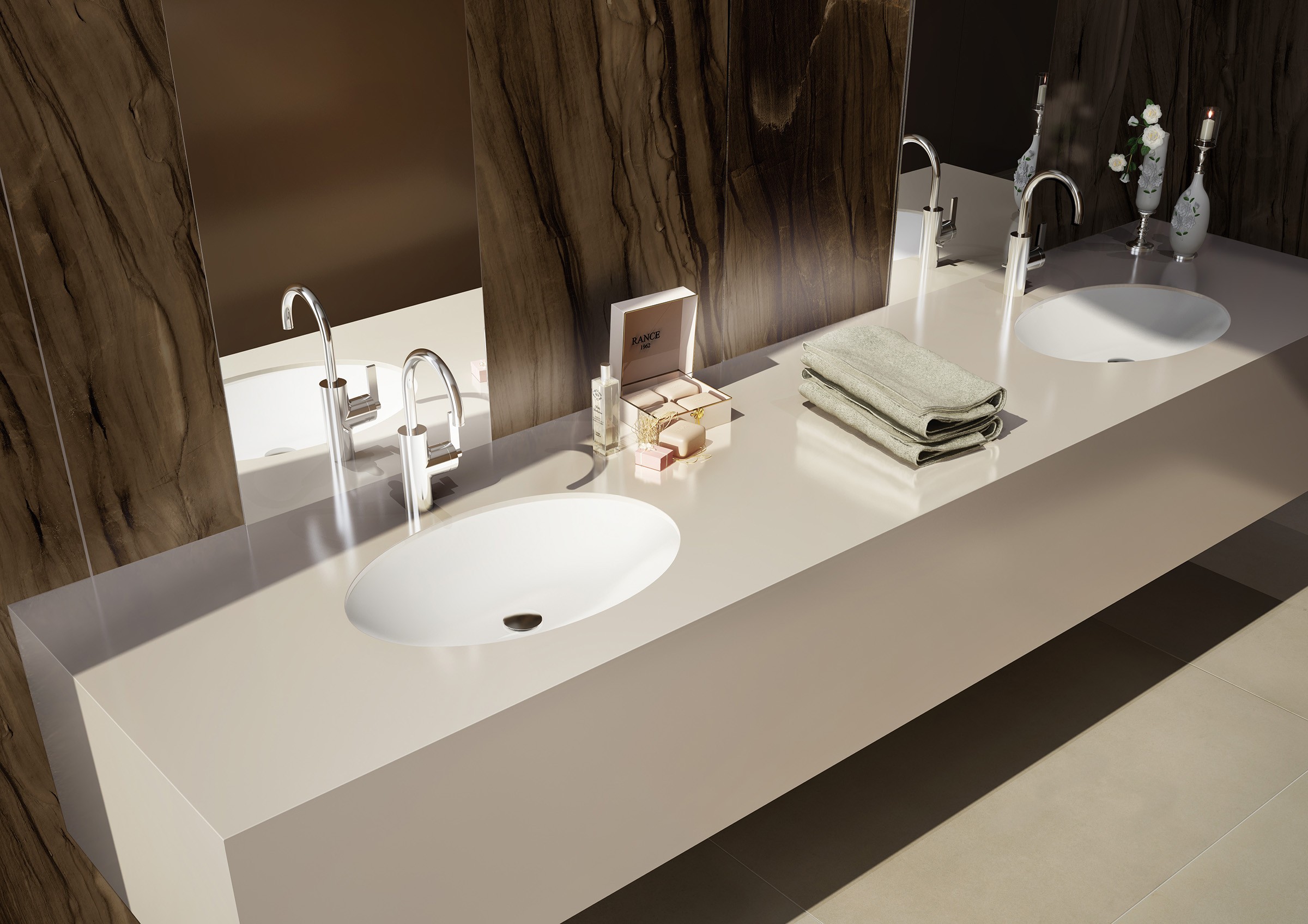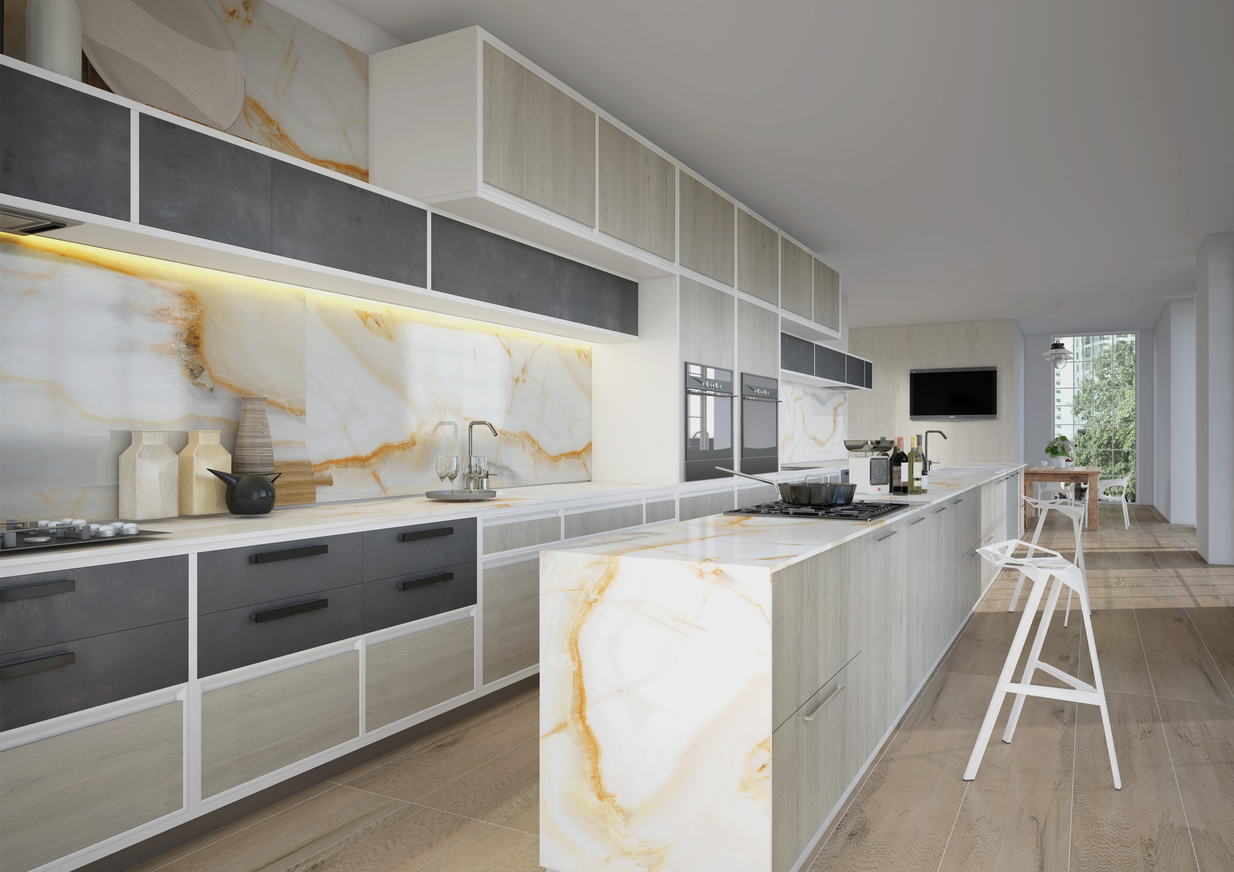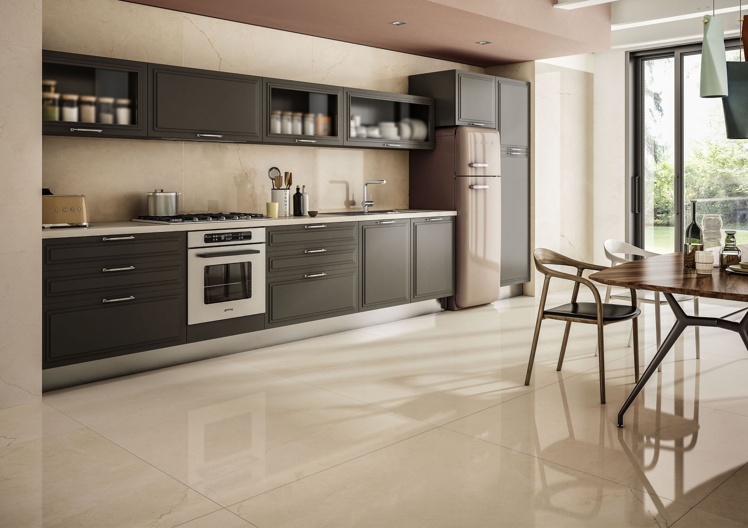 classy marble and granite patterns displaying elegant veins which remodel walls and floors creating surreal ambiances. Classic collection is available in sizes of 135 x 305cm, 120 x 240cm and 120 x 120cm with thickness of 14.5mm, 9mm and 6mm.