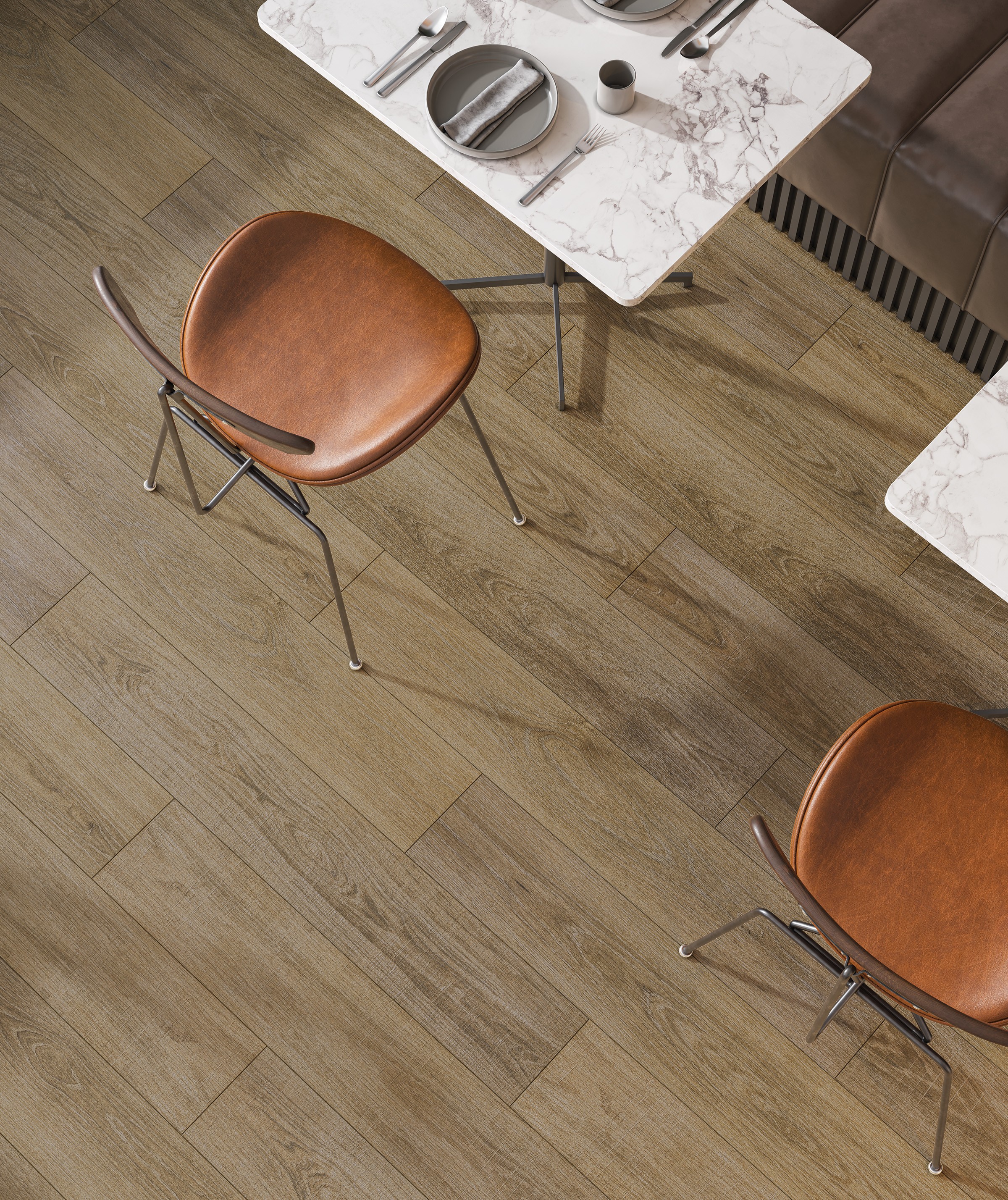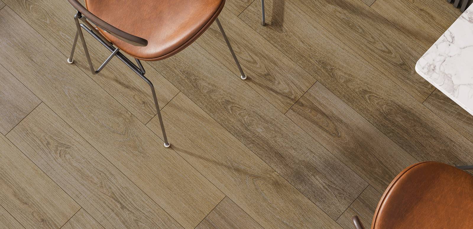 Be inspired by wood effect tiles. Natural-looking tiles are one of the key trends for indoor and outdoor floors and wood is one of the most popular choices thanks to its versatility and beauty. Combining the aesthetic quality of natural timber with the durability of porcelain tiles, wood effect tiles are the perfect option when replacing a floor in a renovation project or laying a new floor in a newly built property, as it helps in creating your own personal style. Parquet floor tiles can give any room the elegant look of hardwood, in an eco-friendly new way. It’s waterproof, highly resistant to scratches and chemicals, easy to clean and resistant to heat and frost. It definitely looks like a good idea!