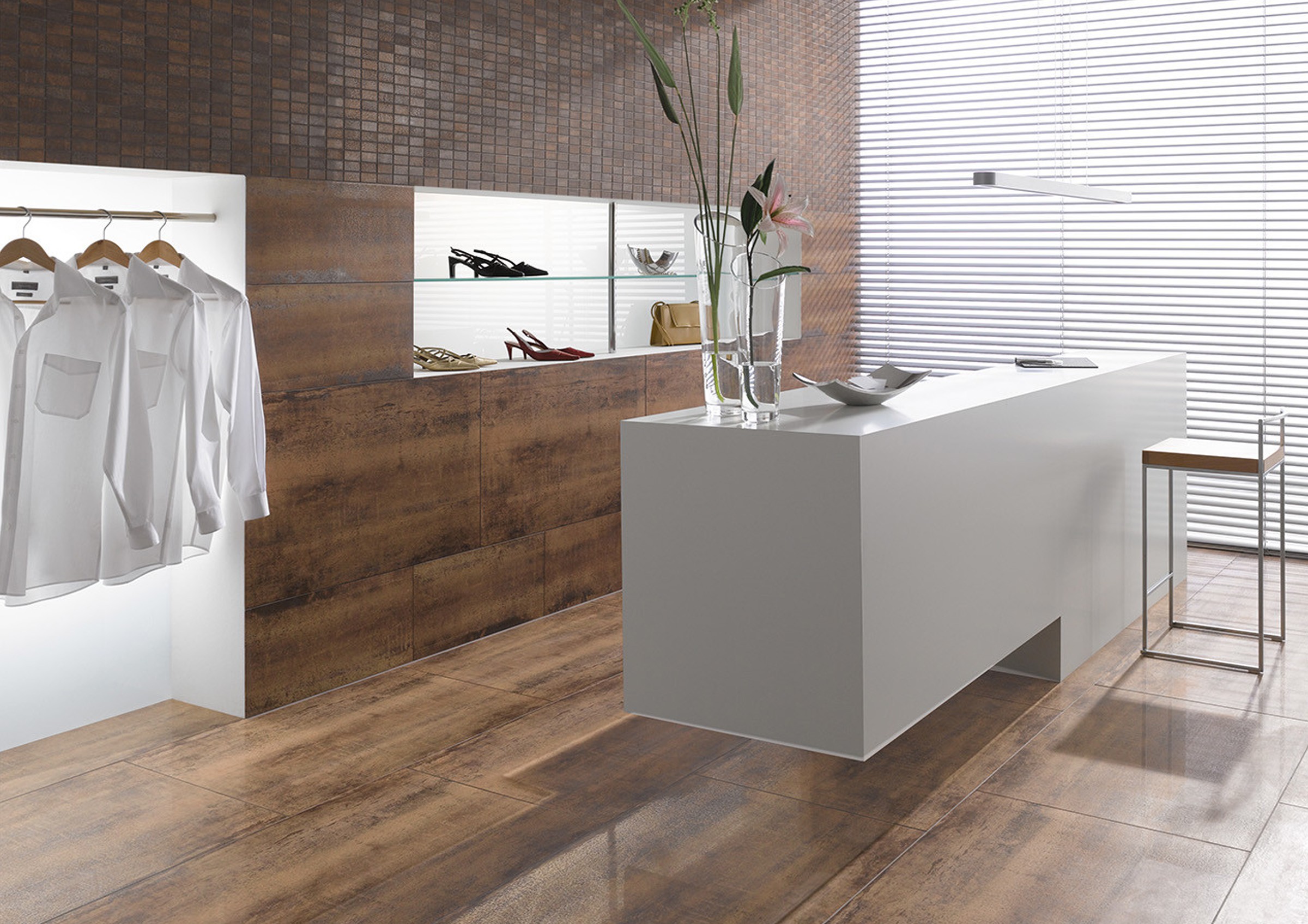 Oxidium gres porcelain is an expressive and unusual collection with an impressive aesthetic appeal. This unique tile displays the fascinating surface effects of oxidised metal with its glazed and stained porcelain body. The modern format of 30x60cm and 45x90cm offers endless flexibility and scope for interchanging different shades.