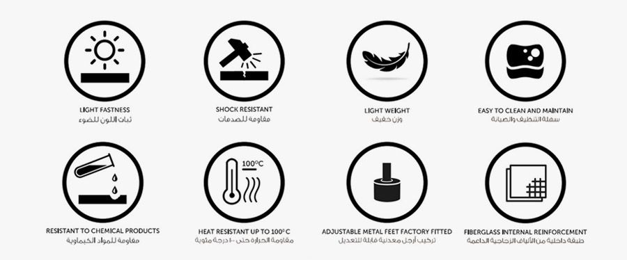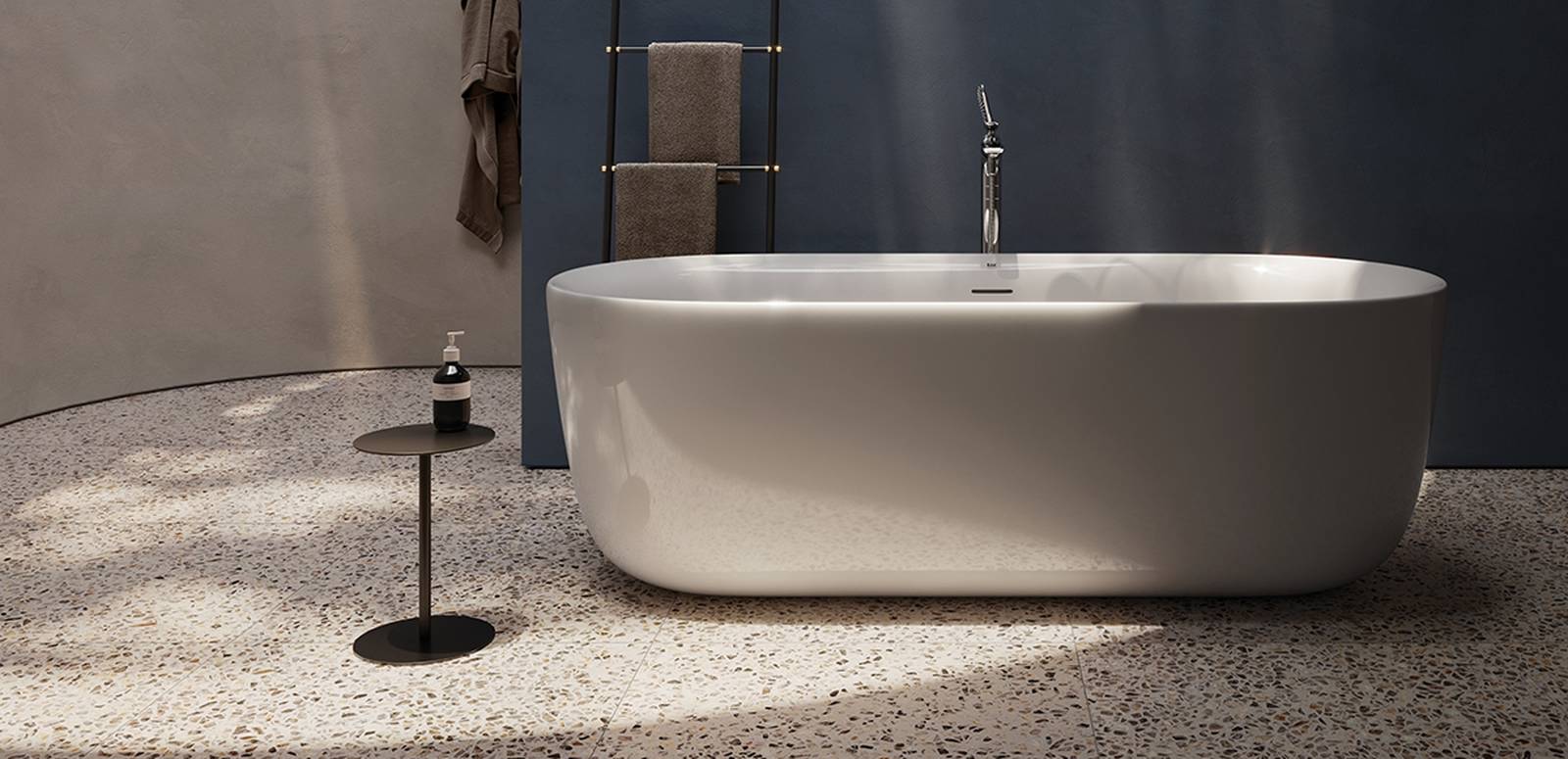 RAK-Contour bathtubs are made of high quality acrylic, a durable material with a timeless glossy white finish that perfectly complements the other bathroom products.