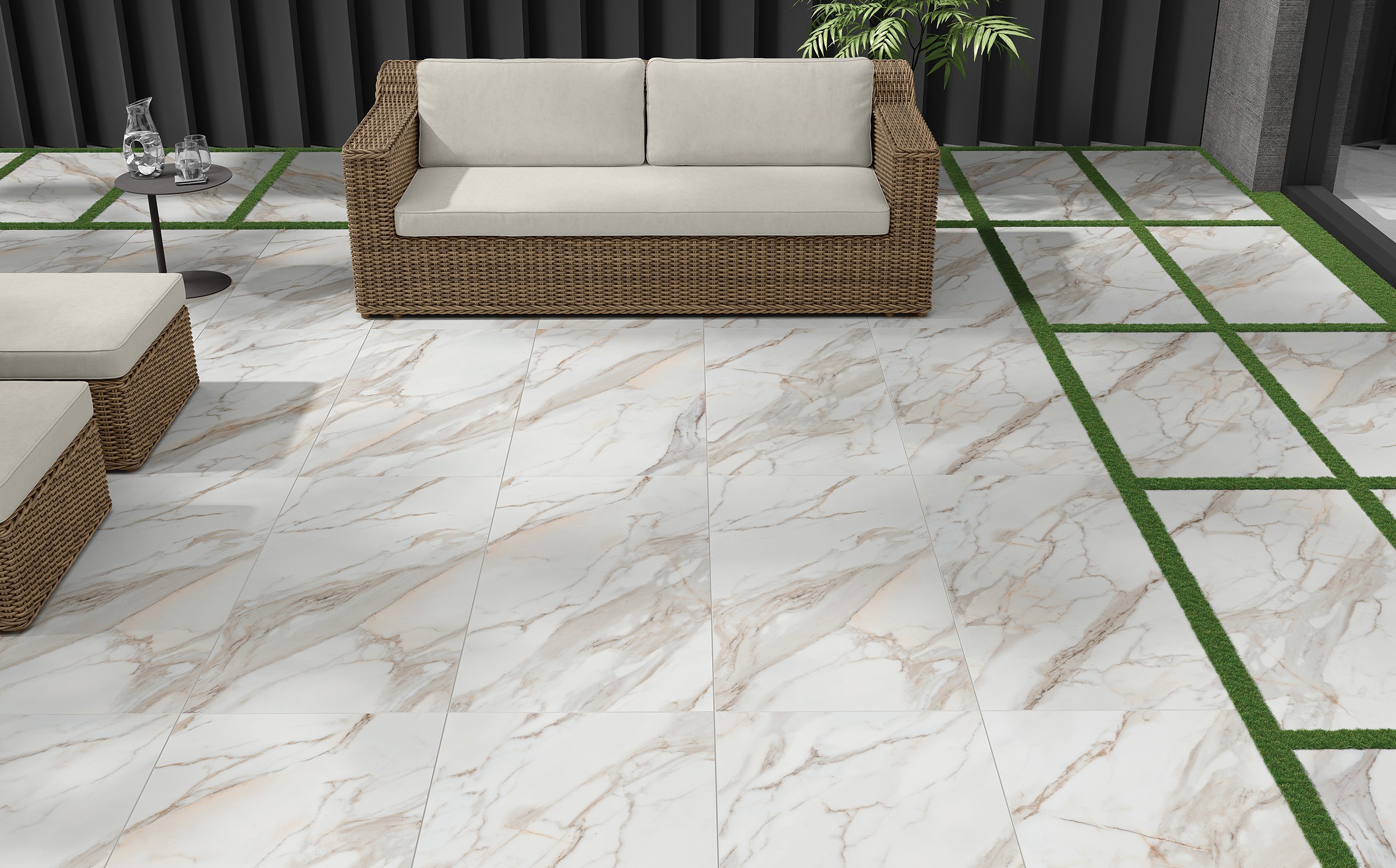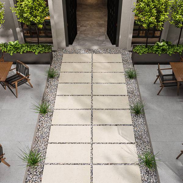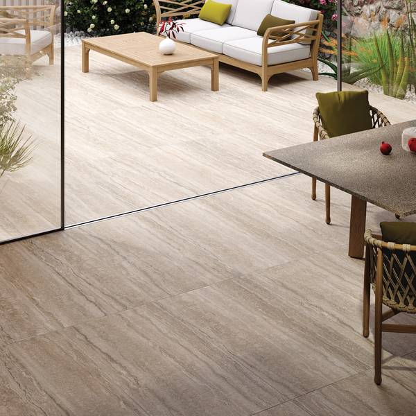 Give your spaces a new look. Sustainable and adaptable, porcelain tiles are the ideal choice to design or revamp gardens, patios, terraces, driveways or pool areas. The different installation possibilities allows the material to blend in with its surrounding landscape. You can choose a 20mm solution, an antislip normal thickness tile, a special antislip A+B+C product. Imagine your outdoor space