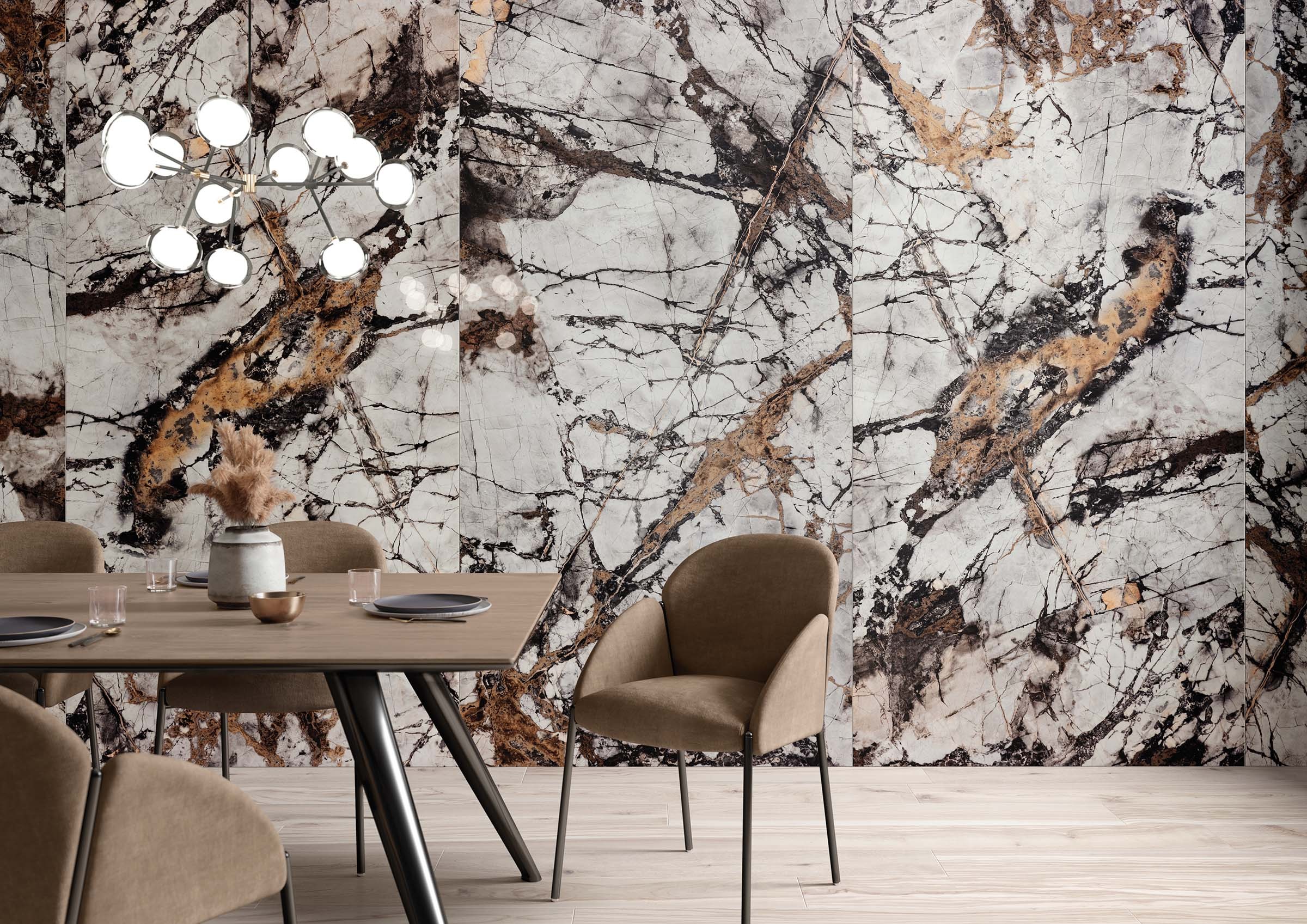 Design your luxury interiors with a timeless charm. A wide and varied range of collections inspired by the elegance of marble to offer hundreds of solutions for residential areas, hospitality industry and business places. Revised classy marble and granite patterns displaying elegant veins which remodel your spaces, creating sophisticated ambiances. When you chose a marble looking tile collection, you chose the timeless beauty of one of the finest material in nature, combining it with all the advantages of porcelain and ceramic tiles in terms of performance, durability and ease of laying and maintenance.